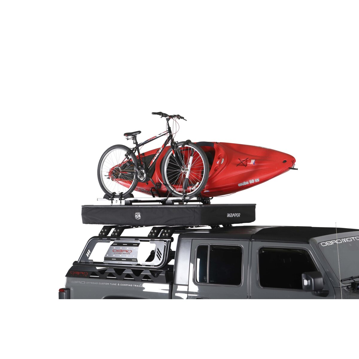 Be amazed by the X-Cover 2.0! iKamper's rooftop tent is revolutionary in many ways: a combination of a foldable and hard-shell rooftop tent has resulted in a lightweight space miracle with plenty of room for sleeping – and the ability to transport your sports equipment on the hard shell cover of the tent.